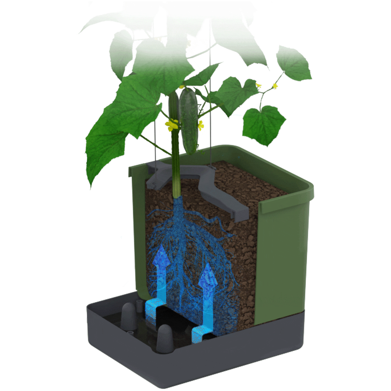 Durch die optimale Größe vom Wassertank und die Bewässerungsbänder, die das Wasser zur Pflanze transportieren, musst du CURT CUCUMBER nur ca. 1x pro Woche gießen.