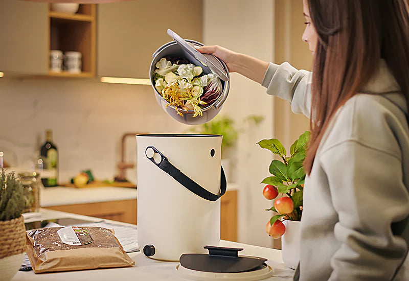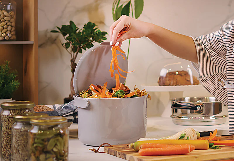 Stell den Komposter einfach auf Deine Küchenplatte: platzsparend, handlich und mit genug Fassungsvermögen für den Alltag. Damit bleibt Deine Küche sauber und organisiert.