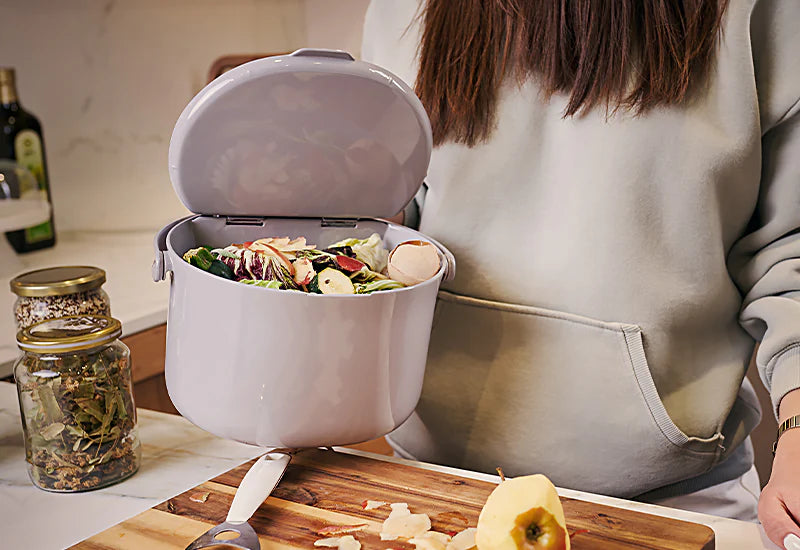 Der Biomülleimer passt in Deine Routine: einfach zerlegen, Deckel und Griff abnehmen und ab in die Spülmaschine (bis 55 °C). So hältst Du ihn mühelos sauber – jeden Tag.