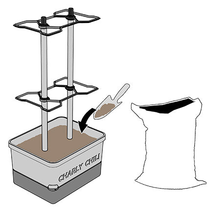 Step 1:Fill CHARLY CHILI with approx. 10 liters of soil. It's best to mix the soil with an organic long-term fertilizer (e.g. organic sheep's wool fertilizer ).
